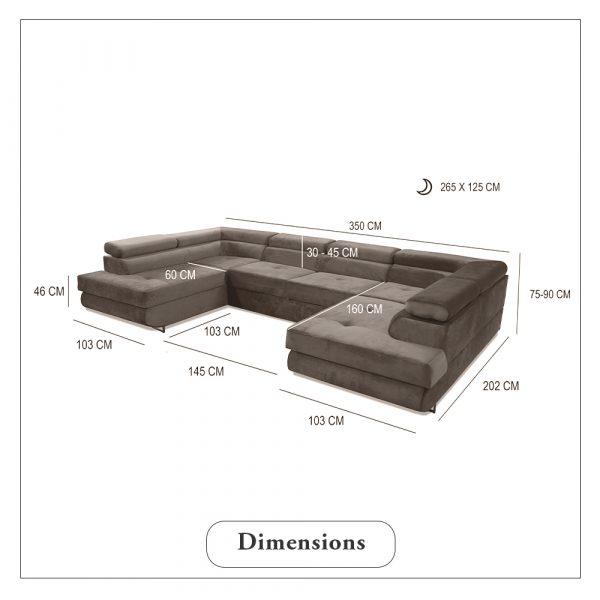 The best way to organize your thing in well manner because it has two storage spaces. This luxury sofa can also offer you the comfortable sleeping area for you and for your beloved once. After unfolding, there is a bed measuring 265 x 125 cm, which is upholstered like the entire seat. The sofa set is made of springs in combination with high-quality PUR foam, so it is strong but, at the same time, very comfortable.