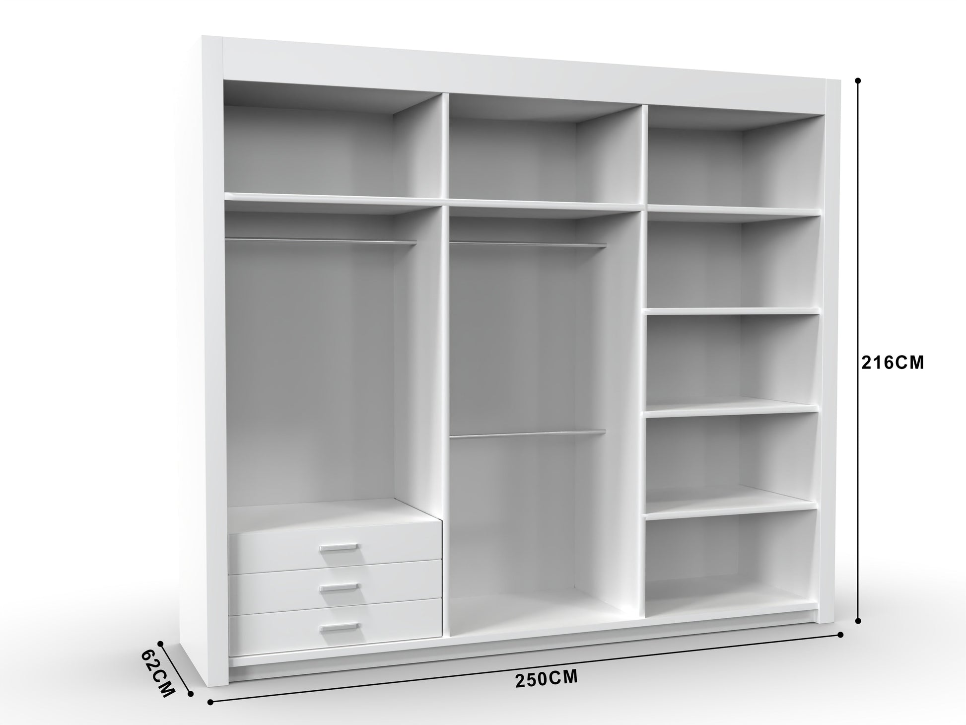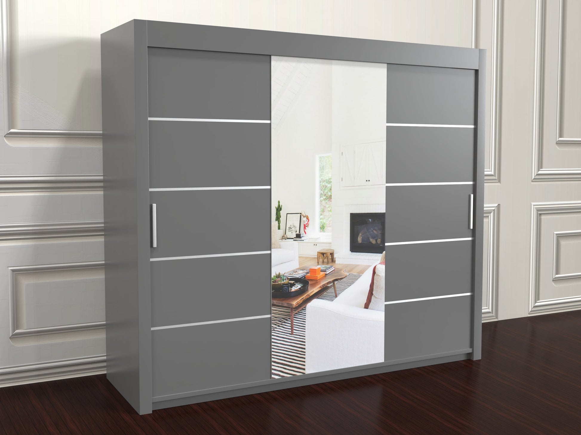 Vision Sliding Wardrobe with Mirror Black, White, Grey 250cm